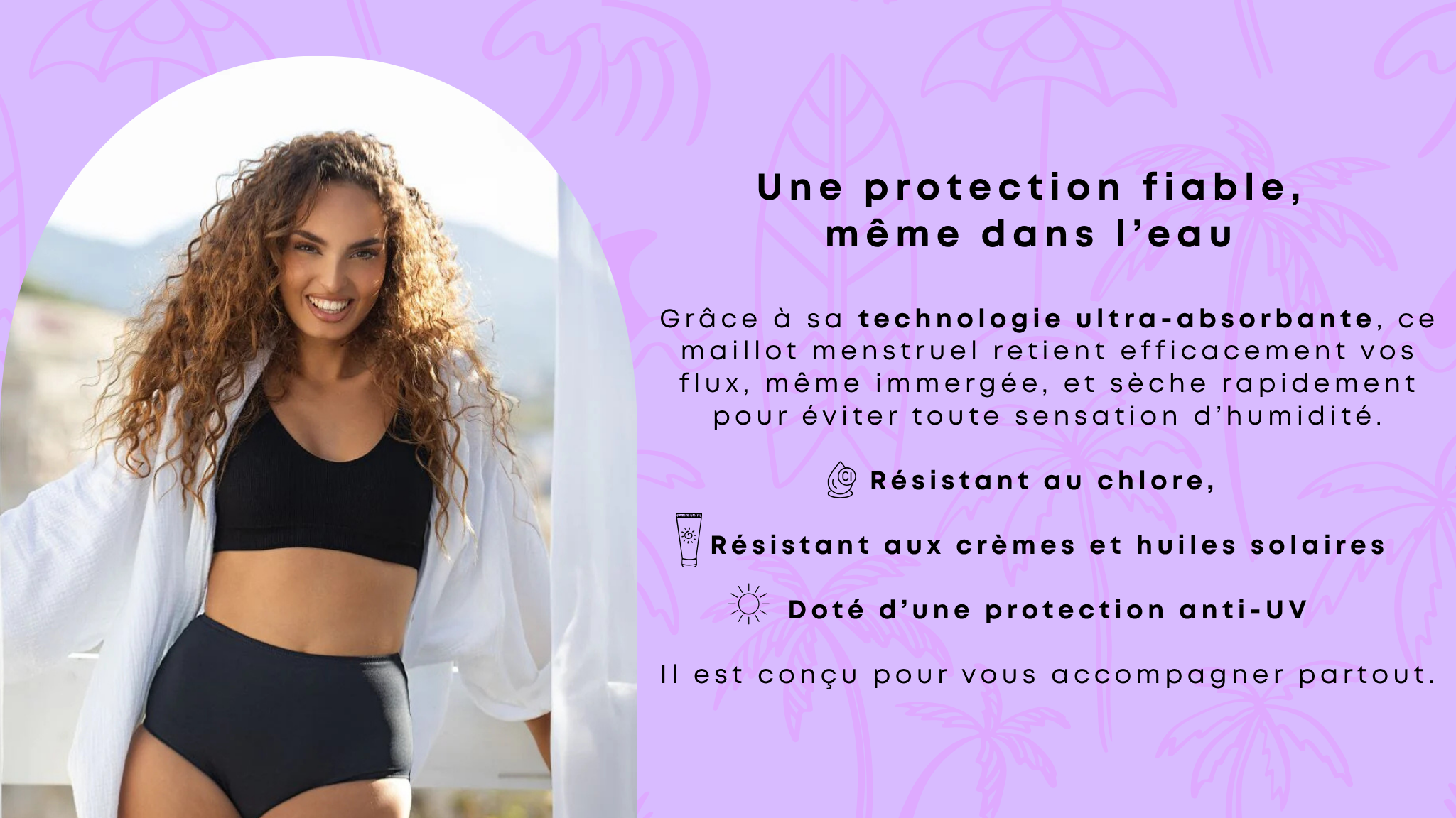 Maintien parfait et confort pour les activités aquatiques, même en période de flux.